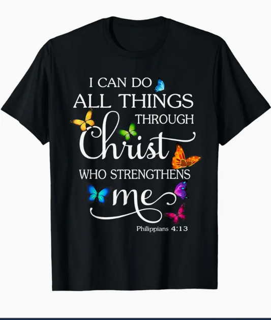 "Strength Through Christ" Butterfly Scripture Tee – Philippians 4:13